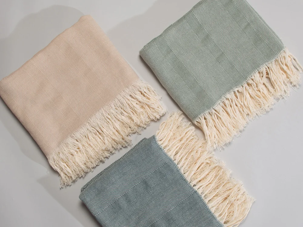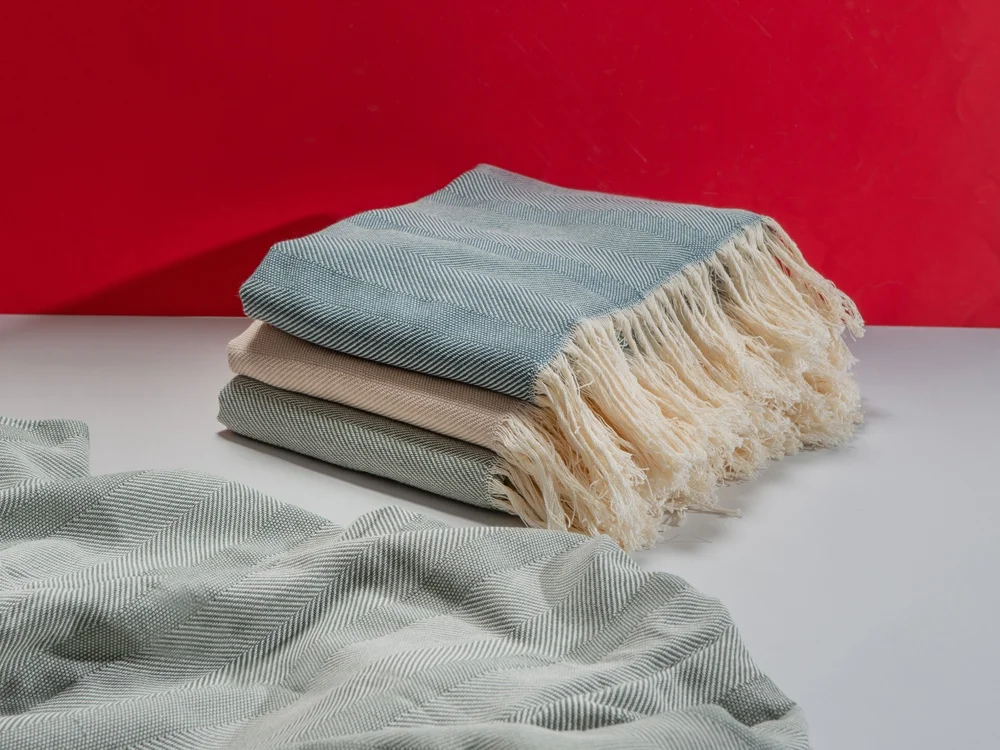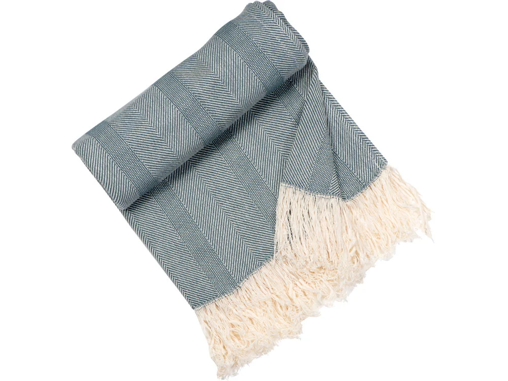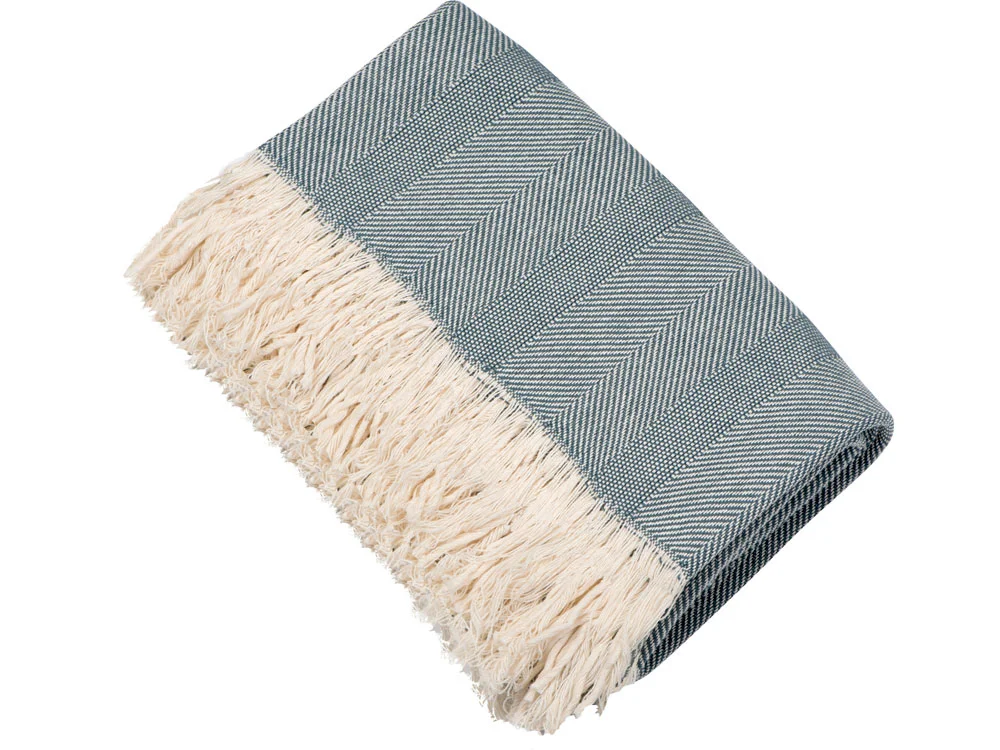 Плотный плед из натурального хлопка с бахромой по бокам. Можно использовать как одеяло или как покрывало для украшения интерьера.
