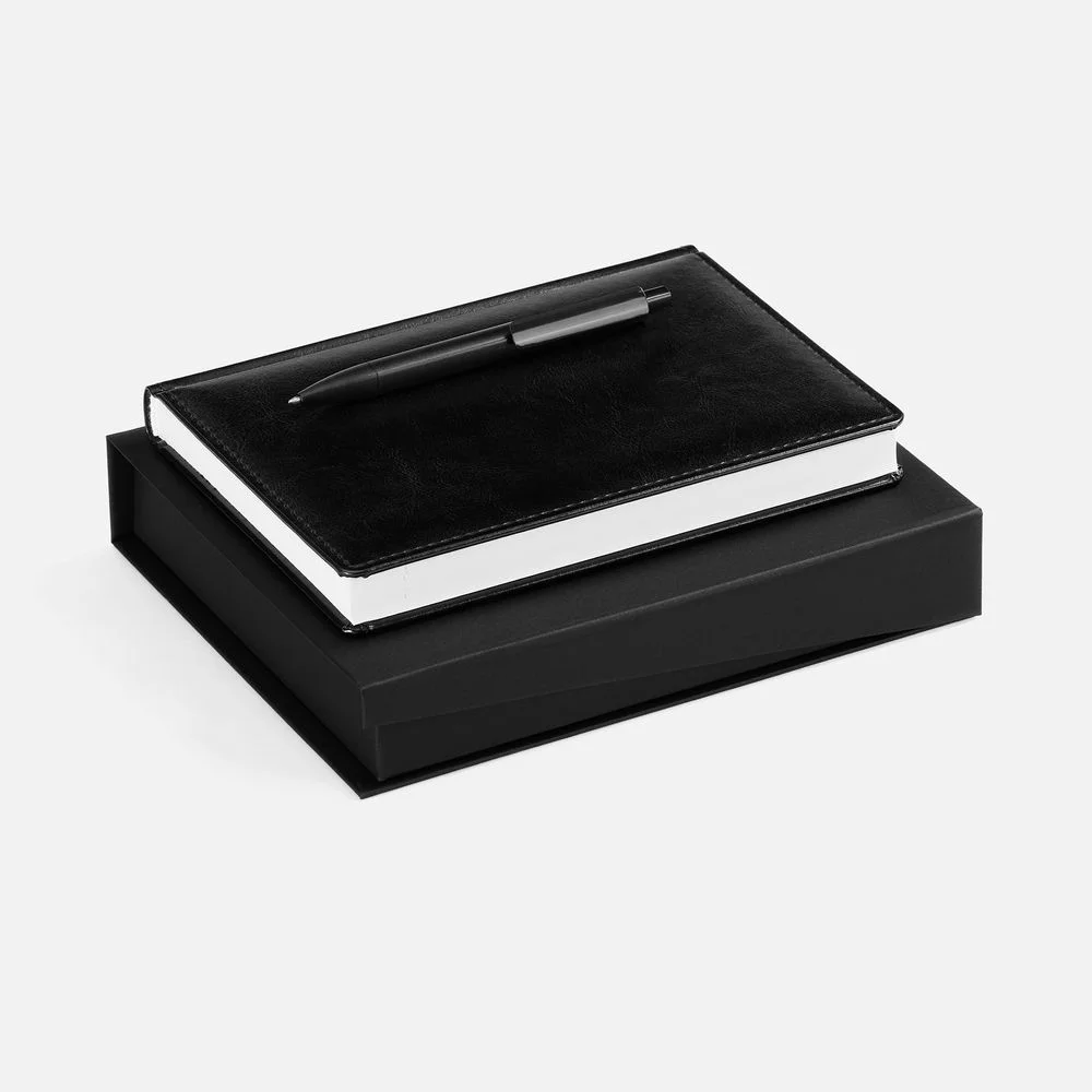 Две самые классические модели в одном деловом наборе: ежедневник Nebtaska с «пухлой» обложкой и ручка Raja — которые, кажется, никогда не выйдут из моды.