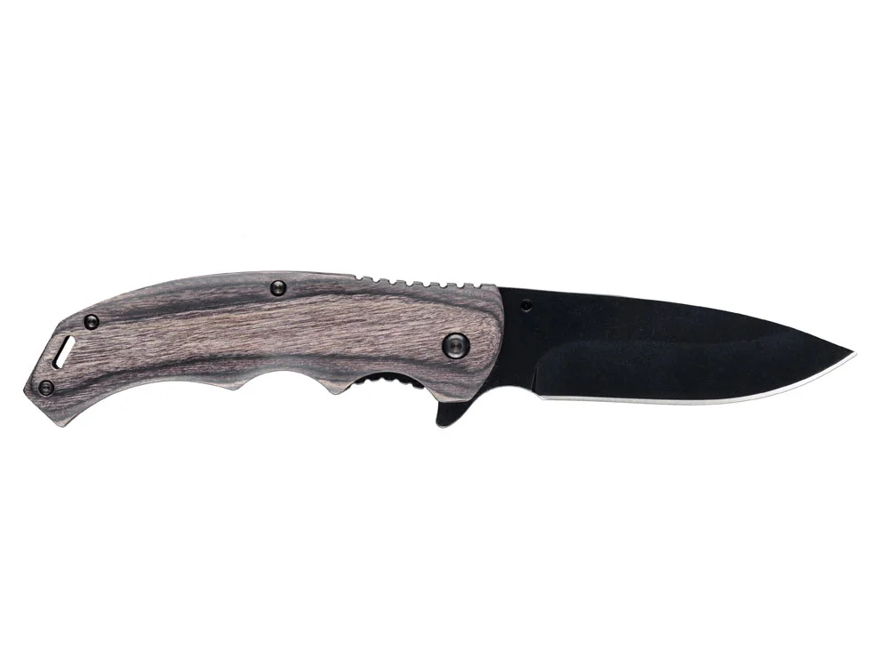 Нож складной Stinger, 120 мм, (чёрный), материал рукояти: дерево/сталь (коричневый)