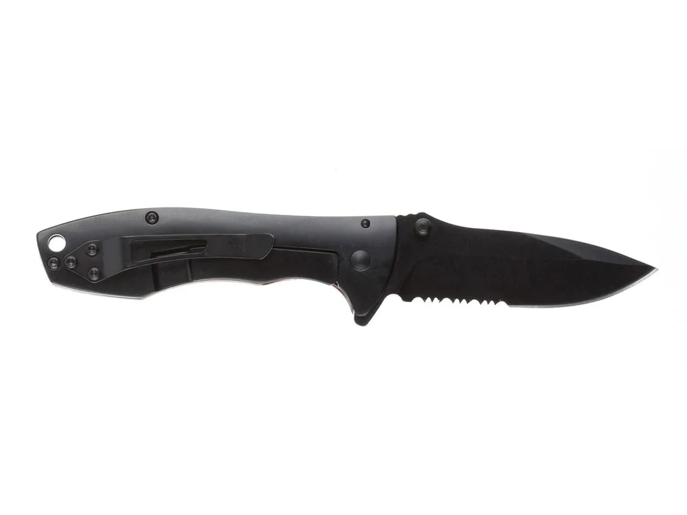 Особенности: лезвие с серрейторной кромкой, рукоять с клипом и отверстием под темляк