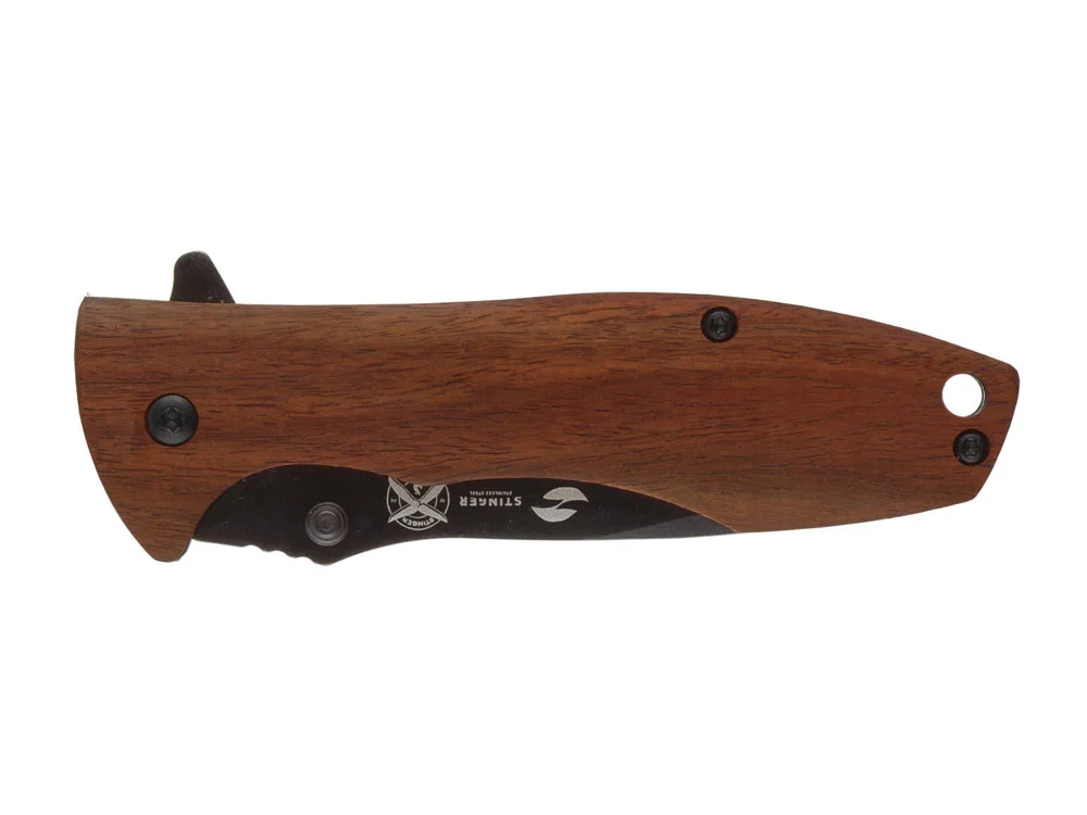 Нож складной Stinger, 80 мм (чёрный), материал рукояти: сталь/сандаловое дерево (коричневый)
