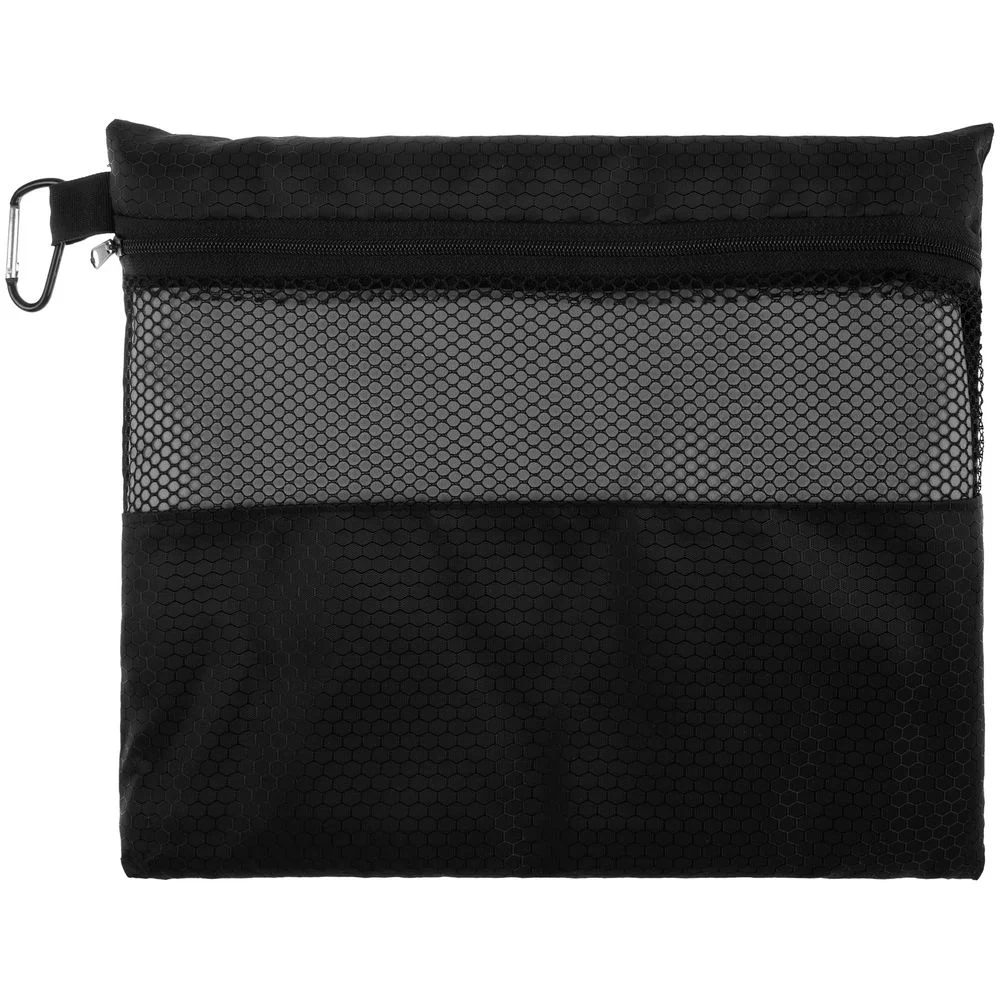 Полотенце упаковано в сумку-чехол из прочной ткани «рипстоп» с дышащим сетчатым верхом. Чехол также можно использовать в качестве несессера для косметических и купальных принадлежностей, и при помощи карабина — прикрепить к рюкзаку или сумке.