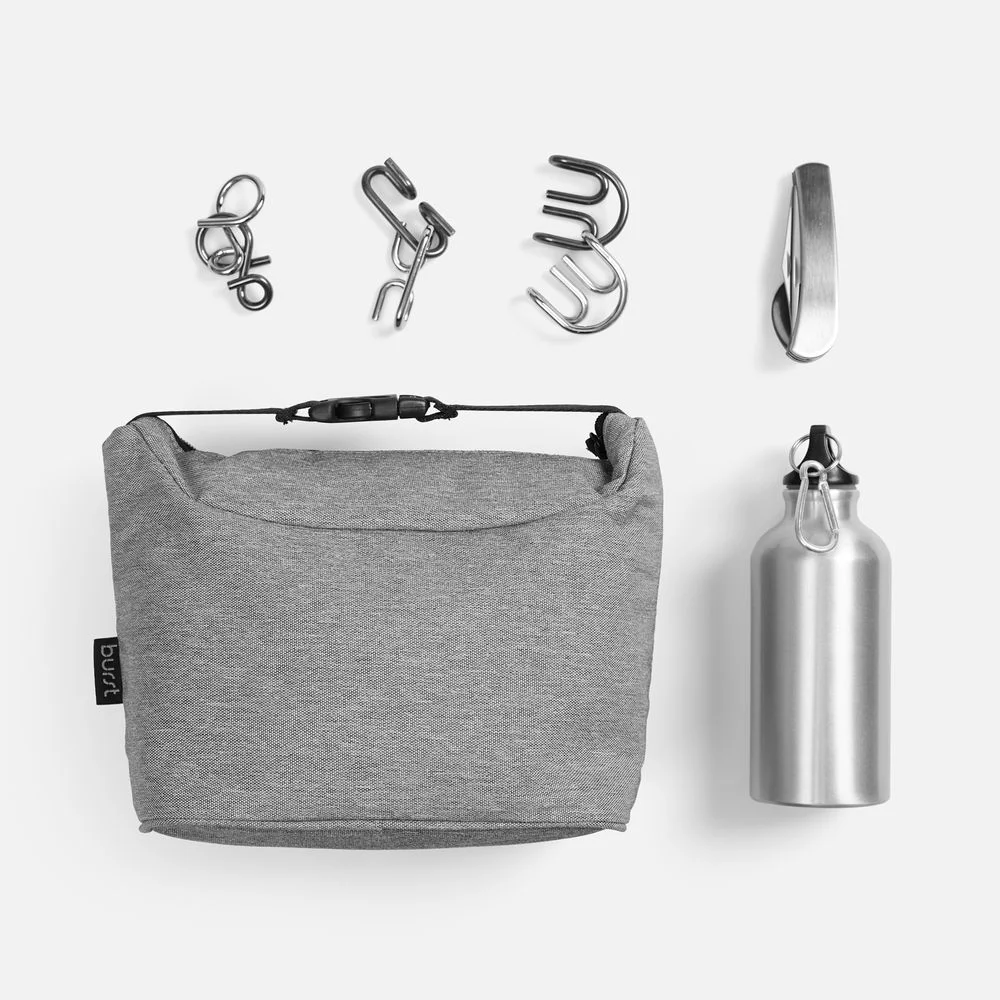 Нержавеющий столовый прибор выручит при желании перекусить вне дома или офиса, термосумка сохранит еду теплой, а прочная алюминиевая бутылка — напиток горячим. Все необходимое всегда под рукой. А чтобы перезагрузить голову, добавлена увлекательная головоломка — источник свежих идей.Емкость бутылки 400 мл.