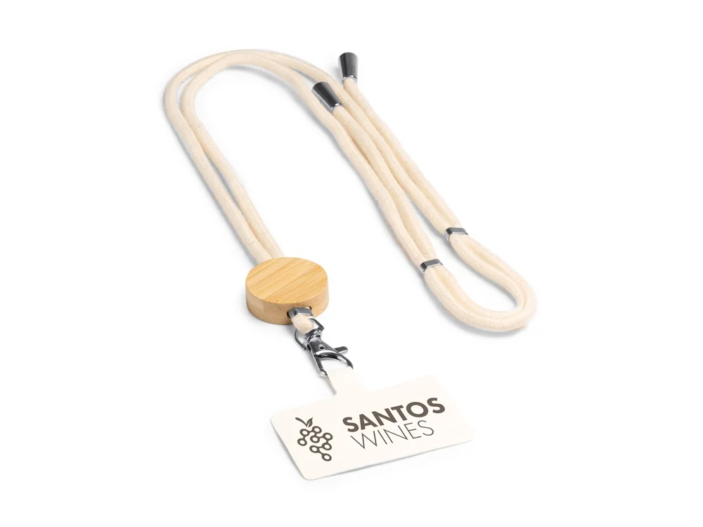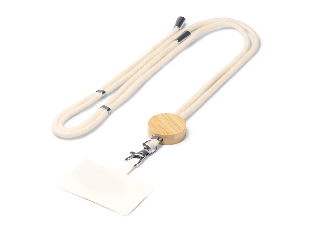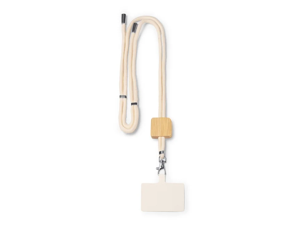 Шнурок-держатель для мобильного телефона из хлопка с бамбуковыми вставками и системой регулировки.
