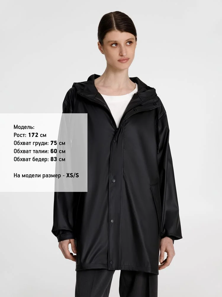 Парка с капюшоном из полиэстера с полиуретановым непромокаемым покрытием.